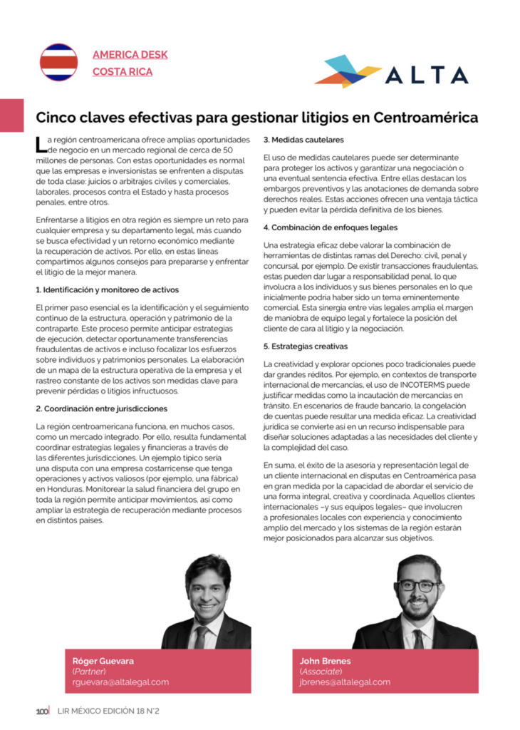 - Cinco claves efectivas para gestionar litigios en Centroamérica
