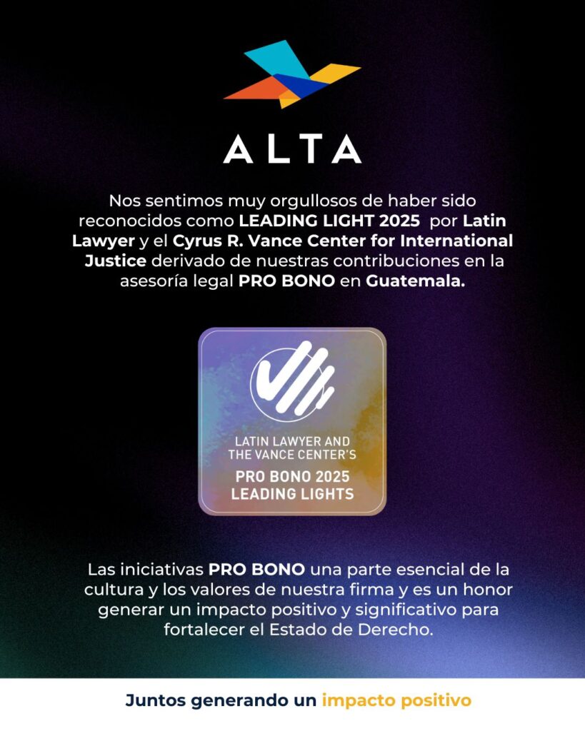 Nos sentimos muy honrados de compartir nuestro reconocimiento como Leading Light pro bono 2025 por Latin Lawyer y el Cyrus R. Vance Center for International Justice.
