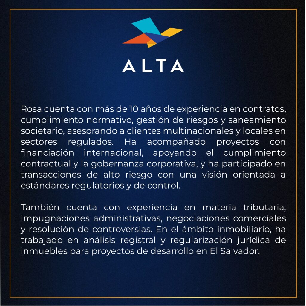 Nos complace anunciar la incorporación de Rosa V. a nuestro equipo en el área de práctica de Corporativo & Transaccional en nuestra oficina de El Salvador.